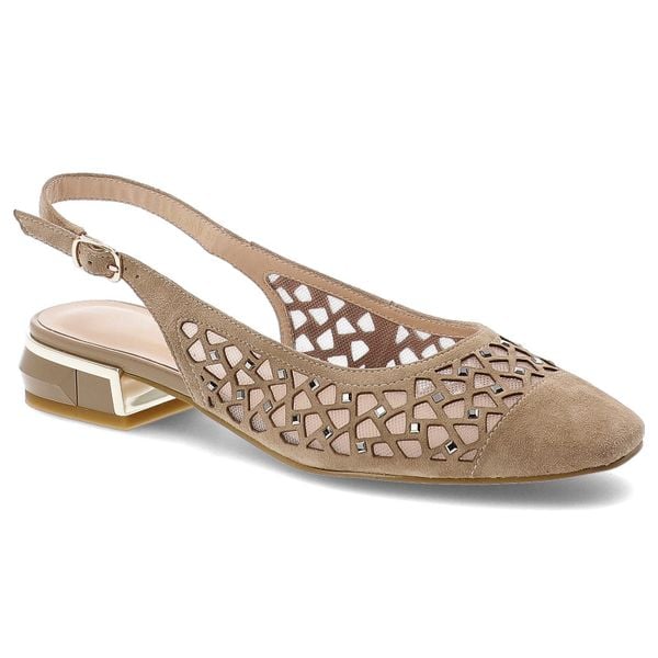 Sandały damskie S.Barski, ze skóry naturalnej z ażurową cholewką i niskim ozdobnym obcasem, beżowe, CR61-3019
