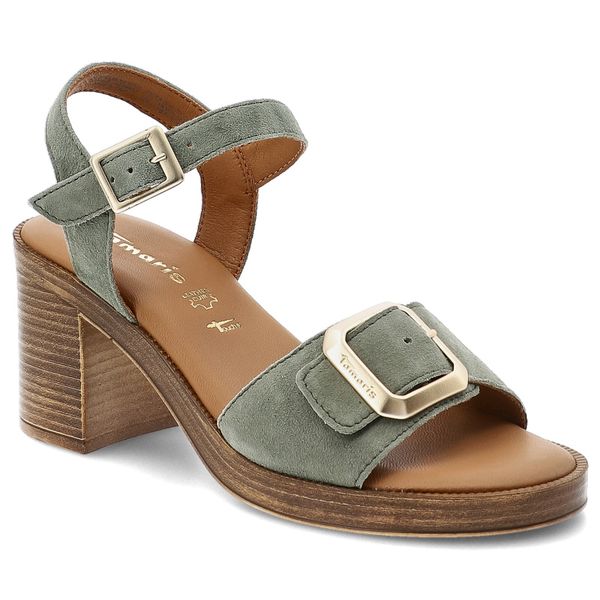 Sandały damskie Tamaris, skóra naturalna zamszowa regulowane paski z klamrami stabilny drewnopodobny obcas wygodna wyprofilowana wkładka, zielone, 1-