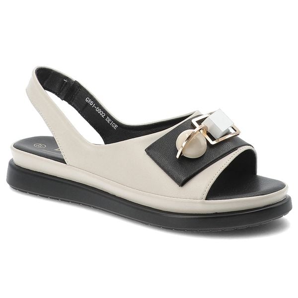 Sandały damskie S.Barski, ze skóry naturalnej licowej ozdobna klamra miękka podeszwa wygodny fason, beżowe, GR61-5932