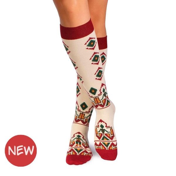Damskie bawełniane skarpetki 3/4 z tradycyjnymi motywami w kolorze ecru