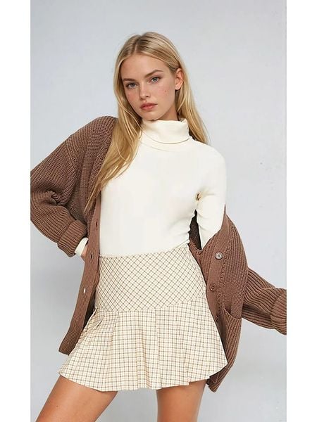 – zapięcie: suwak- dolny brzeg: z falbankami- krój: rozkloszowany- wzór: kratka
