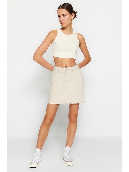 trendyol Spódnica dżinsowa w kolorze kremowym rozmiar: 40