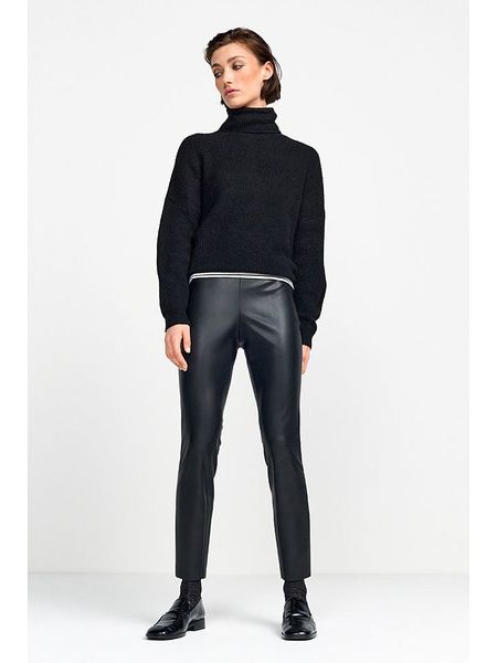 – wysokość pasa: high waist- zapięcie: boczny suwak- krój: wąski- look: jednokolorowy, imitacja skóry