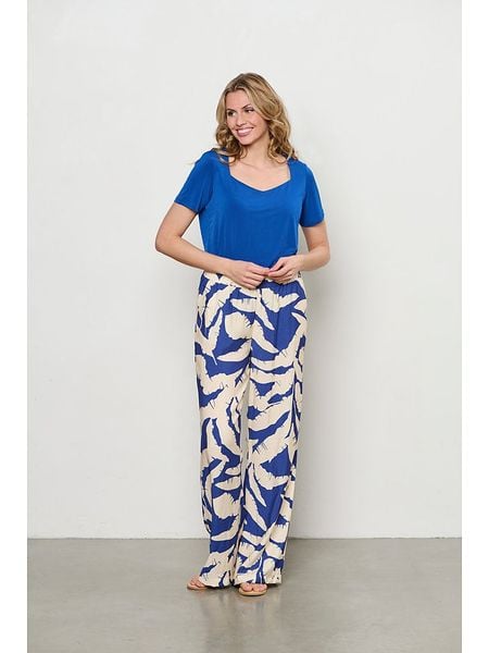– wysokość pasa: high waist- pas / ściągacz: elastyczny- kieszenie: wpuszczane- krój: luźny- wzór: na całości