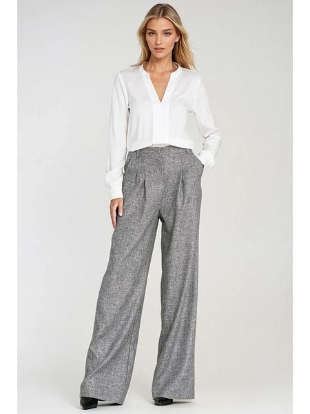 spodnie z wysokim stanem z podwyższonym stanem spodnie z wysokim stanem nife odzież damska limango.pl odzież damska nife spodnie z wysokim stanem ze sklepu limango.pl szare spodnie z wysokim stanem