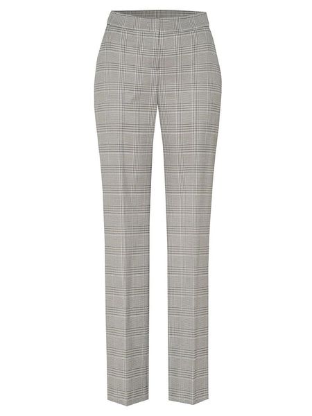 – wysokość pasa: high waist- fason: regular fit- krój nogawek: prosty- zapięcie: haczyk i suwak- kieszenie: wpuszczane- detale: kant- wzór: kratka
