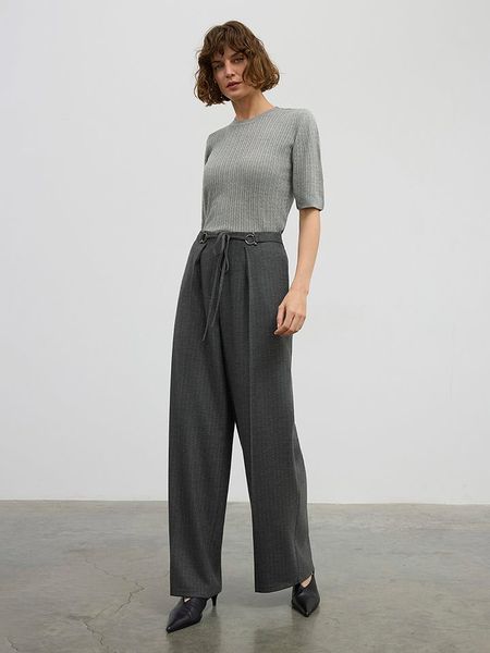 – wysokość pasa: high waist- pas / ściągacz: elastyczny- zapięcie: haczyk i suwak- kieszenie: wpuszczane- detale: kant, połyskująca nitka, ozdobne wiązanie- krój: luźny- look: jednokolorowyUwaga: Przy wyborze właściwego wariantu zaleca się korzystanie z tabeli rozmiarów.