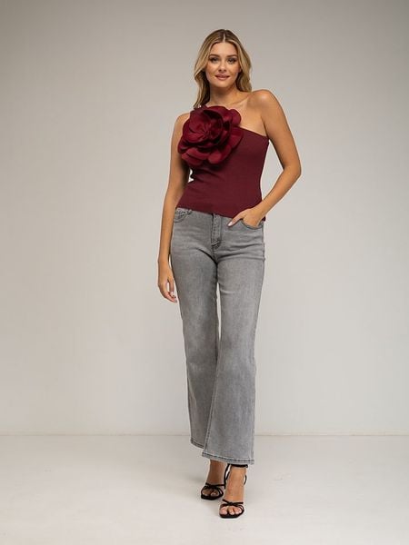 – wysokość pasa: high waist- fason: flared fit- krój nogawek: wąski- zapięcie: guzik i suwak- szlufki na pasek: tak- kieszenie: 5 klasycznych- przetarcia: tak