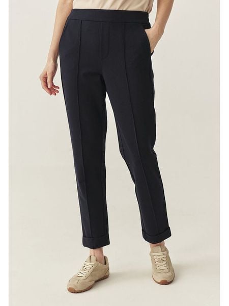 – wysokość pasa: high waist- fason: Tapered fit- krój nogawek: wąski- pas / ściągacz: elastyczny- kieszenie: wpuszczane- długość nogawek: 7/8- detale: kant- look: jednokolorowy