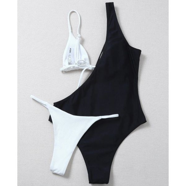 Strój kąpielowy prążkowany asymetryczny szybkoschnący Gerta
