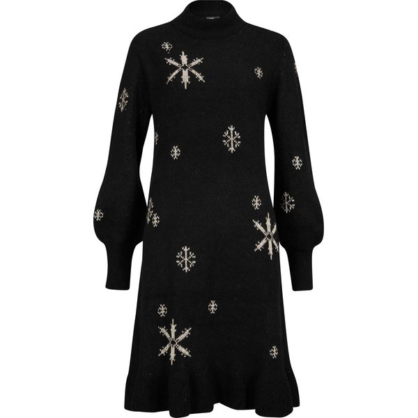 Przytulna sukienka dzianinowa z golfem i rękawami balonowymi.