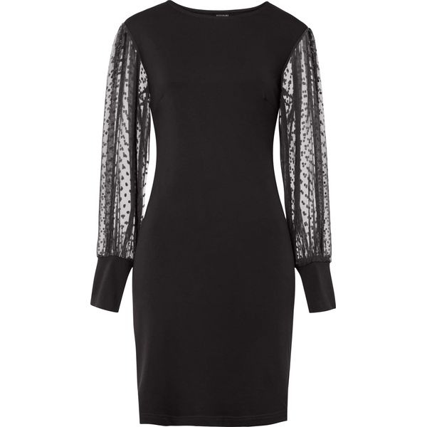 Stylowa sukienka z dżerseju z balonowymi rękawami z szyfonu.