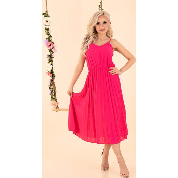 Sukienka na Ramiączkach z Plisowanym Dołem – Fuksja