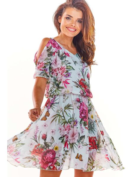 – dekolt: V- talia: elastyczna – detale: wycięcia – krój: luźny – wzór: kwiatowy