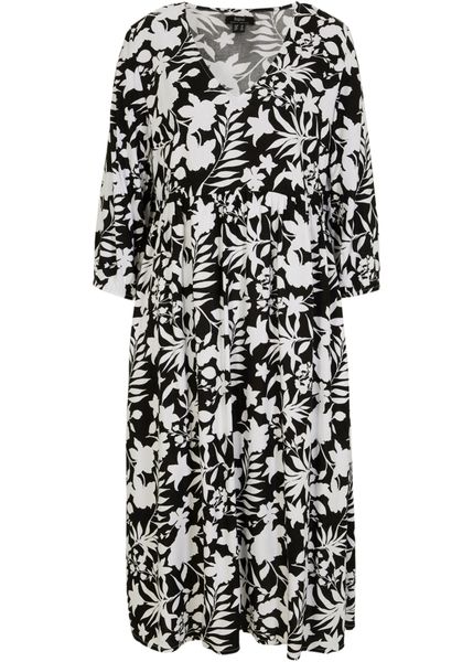 Miękko opadająca sukienka z efektownym dekoltem i kieszeniami. Całkowita dł. w rozm. 42 ok. 114 cm. Można prać w pralce.