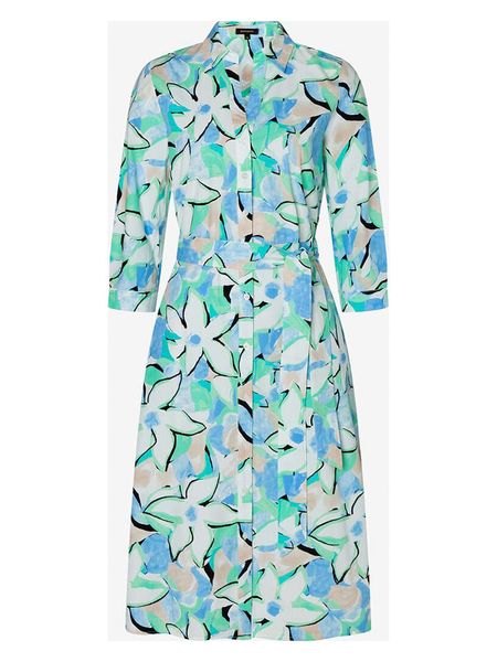 – czysta bawełna- kołnierz: kent- dekolt: V- zapięcie: listwa guzikowa- długość rękawa: 3/4- zdejmowany pasek: tkanina- krój: litera A- wzór: na całości