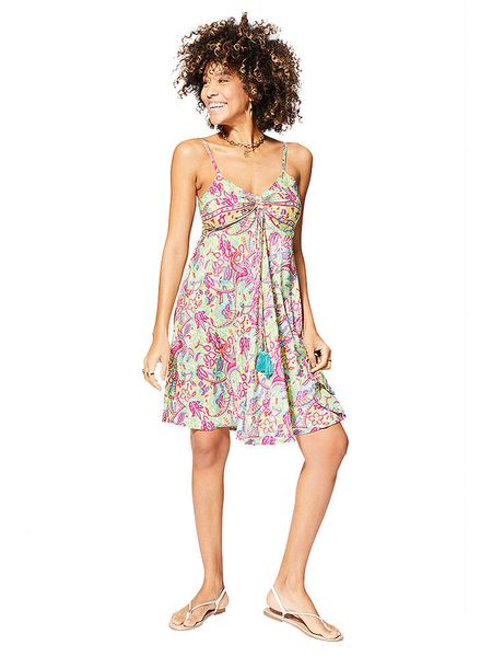 – dekolt: V- ramiączka: wąskie- detale: ozdobne wiązanie- zapięcie: bez- krój: taliowany- wzór: kwiatowyWskazówka: Na metkach odzieży tej marki znajdują się rozmiary francuskie. Rozmiarówka została przez nas przeliczona. Podane do wyboru warianty rozmiarów odpowiadają standardowym europejskim rozmiarom konfekcji. Prosimy zapoznać się z zamieszczonym objaśnieniem rozmiarów: