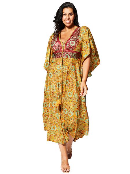 Elegancka sukienka Selena z falbaną o długości MIDI PLUS SIZE XXL OVERSIZE