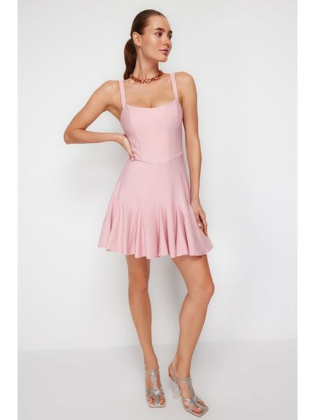 sukienki bez rękawów sukienki z dekoltem na plecach sukienki rozkloszowane sukienki bez ramiączek różowe sukienki sukienki z falbankami sukienki trendyol odzież damska trendyol odzież damska limango.pl sukienki mini