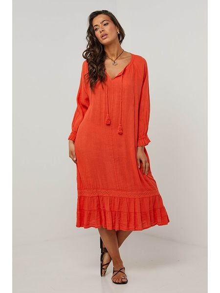 sukienki le monde du lin odzież damska limango.pl pomarańczowe sukienki sukienki bez ramiączek odzież damska le monde du lin sukienki ze sklepu limango.pl sukienki na co dzień sukienki midi sukienki bez rękawów sukienki proste