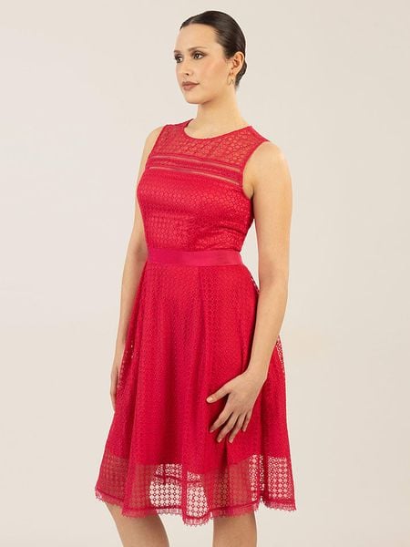 sukienki z dekoltem na plecach sukienki z okrągłym kołnierzem sukienki bez ramiączek odzież damska apart sukienki apart sukienki bez rękawów czerwone sukienki odzież damska limango.pl sukienki midi sukienki bez kołnierzyka