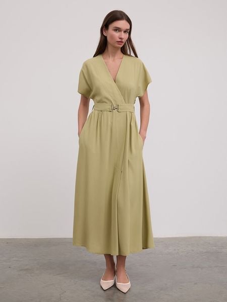 – czysta wiskoza- dekolt: V- szlufki na pasek: tak- zdejmowany pasek: tkanina- kieszenie: wpuszczane- krój: litera A- look: jednokolorowyUwaga: Przy wyborze właściwego wariantu zaleca się korzystanie z tabeli rozmiarów.