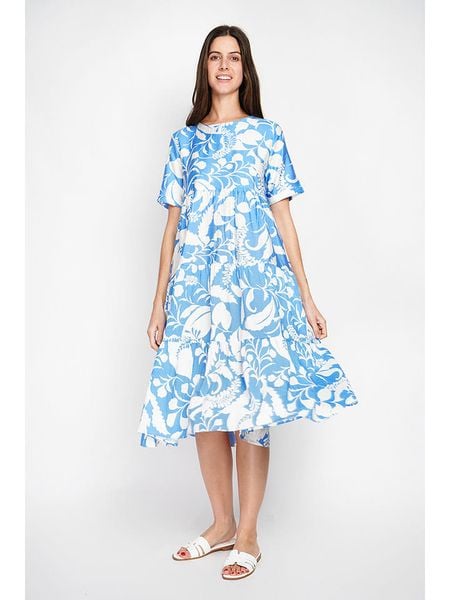 – z dodatkiem lnu- dekolt: okrągły- detale: falbany- krój: rozkloszowany- wzór: na całościWskazówka: Na metkach odzieży tej marki znajdują się rozmiary francuskie. Rozmiarówka została przez nas przeliczona. Podane do wyboru warianty rozmiarów odpowiadają standardowym europejskim rozmiarom konfekcji. Prosimy zapoznać się z zamieszczonym objaśnieniem rozmiarów: