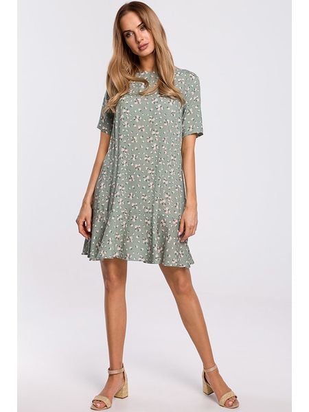– czysta wiskoza- dekolt: łódka- detale: falbany- krój: taliowany- wzór: kwiatowy