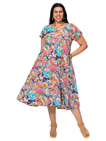 – czysta bawełna- dekolt: okrągły- zapięcie: wiązanie na plecach- kieszenie: wpuszczane- krój: litera A- wzór: kwiatowyWskazówka: Na metkach odzieży tej marki znajdują się rozmiary francuskie. Rozmiarówka została przez nas przeliczona. Podane do wyboru warianty rozmiarów odpowiadają standardowym europejskim rozmiarom konfekcji. Prosimy zapoznać się z zamieszczonym objaśnieniem rozmiarów.