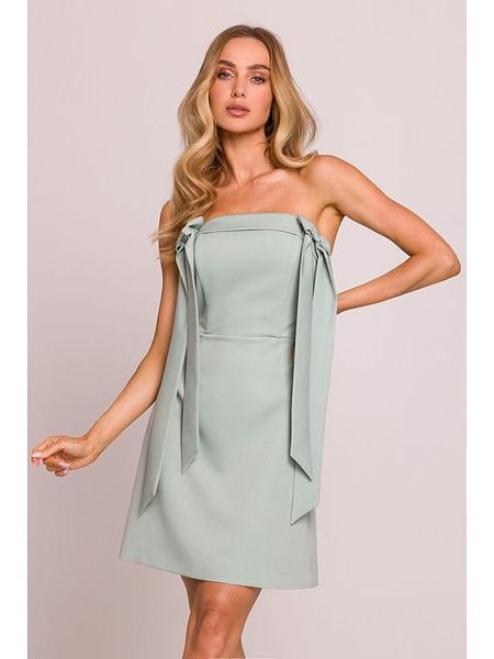 – dekolt: bandeau- zapięcie: suwak na plecach- detale: ozdobne wiązanie, kokardki- krój: taliowany- look: jednokolorowy