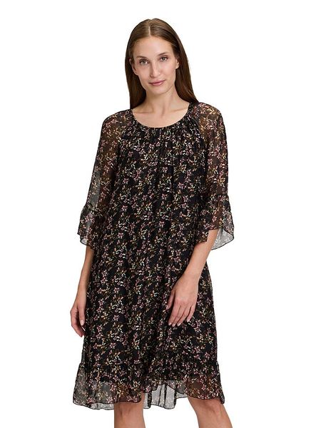 – dekolt: okrągły- długość rękawa: 3/4- krój rękawów: rozszerzany do dołu- dolny brzeg: z falbankami- krój: prosty- wzór: na całości