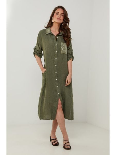 Rodier Lin Lniana sukienka w kolorze khaki rozmiar: M/L