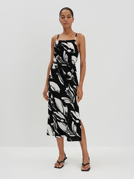 – ramiączka: wąskie- dekolt: okrągły- zapięcie: guzik na plecach- dolny brzeg: z rozcięciem- krój: taliowany- wzór: na całości