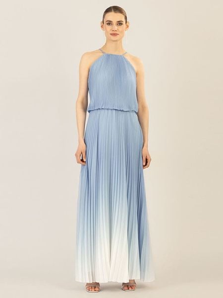 – ramiączka: wąskie- dekolt: okrągły- zapięcie: guzik na plecach- talia: elastyczna- krój: litera A- wzór: przejście kolorów- look: plisy