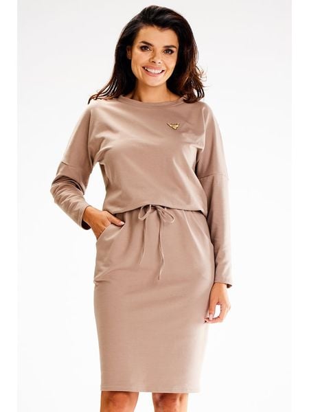 sukienki midi sukienki bez kołnierzyka odzież damska awama sukienki ze sklepu limango.pl brązowe sukienki sukienki z okrągłym kołnierzem sukienki bez rękawów sukienki bez ramiączek sukienki awama sukienki na co dzień