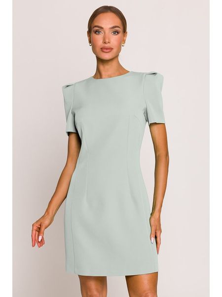 – dekolt: łódka- krój rękawów: bufiasty- zapięcie: suwak na plecach- krój: taliowany- look: jednokolorowy