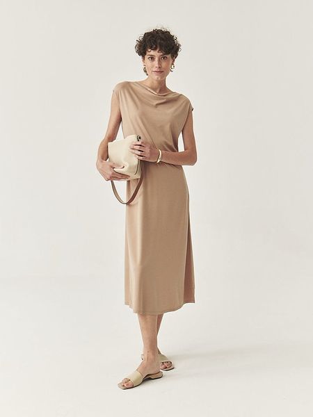 sukienki bez kołnierzyka sukienki bez ramiączek sukienki midi sukienki tatuum odzież damska tatuum sukienki bez rękawów brązowe sukienki sukienki ze sklepu limango.pl odzież damska limango.pl