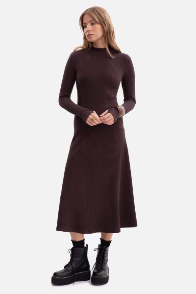 Bawełniana sukienka dzianinowa z golfem rozkloszowana cbrąz