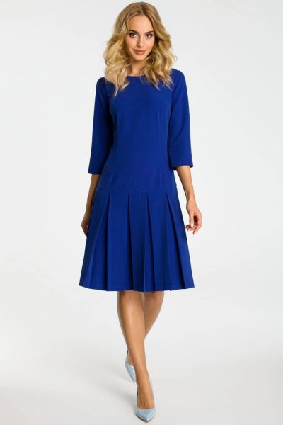 Elegancka sukienka z obniżoną talią i kontrafałdami chabrowa