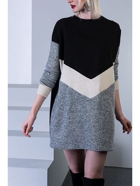 – dekolt: okrągły- ściągacz: dekolt, zakończenia rękawów, dolny brzeg- krój: luźny- wzór: colour blocking