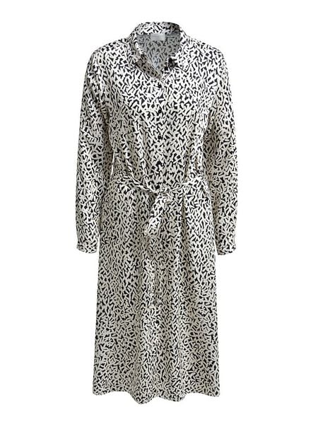 – czysta wiskoza- kołnierz: kent- zapięcie: listwa guzikowa- zakończenie rękawów: guzik- szlufki na pasek: tak- zdejmowany pasek: tkanina- krój: prosty- wzór: na całości