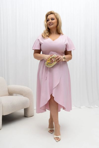 Asymetryczna sukienka Aleta z paskiem w talii w kolorze pudrowego różu PLUS SIZE XXL OVERSIZE WIOSNA