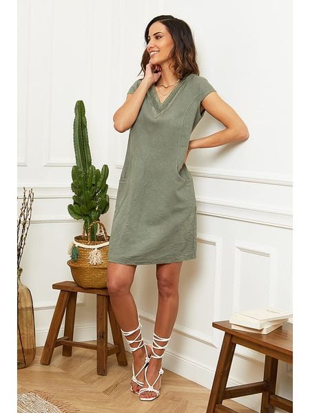 Le Monde du Lin Lniana sukienka w kolorze oliwkowym rozmiar: 36/38