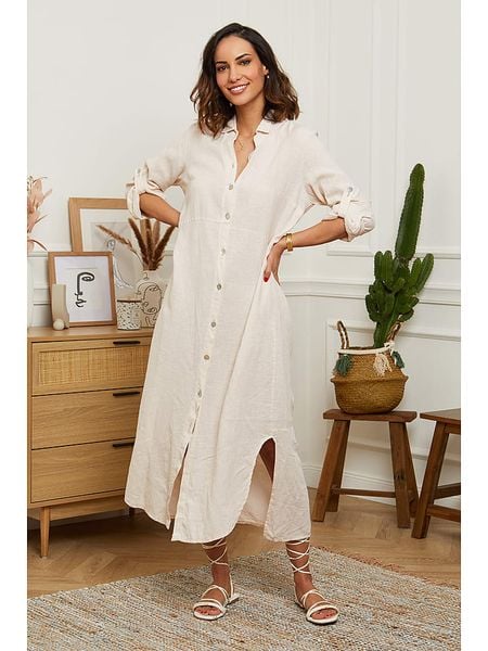 sukienki maxi odzież damska le monde du lin sukienki ze sklepu limango.pl różowe sukienki sukienki bez kołnierzyka sukienki z klasycznym kołnierzykiem sukienki bez rękawów sukienki bez ramiączek odzież damska limango.pl sukienki le monde du lin