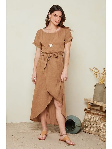 sukienki bez ramiączek sukienki ze sklepu limango.pl sukienki bez rękawów sukienki maxi sukienki z okrągłym kołnierzem brązowe sukienki odzież damska le monde du lin sukienki le monde du lin odzież damska limango.pl sukienki bez kołnierzyka