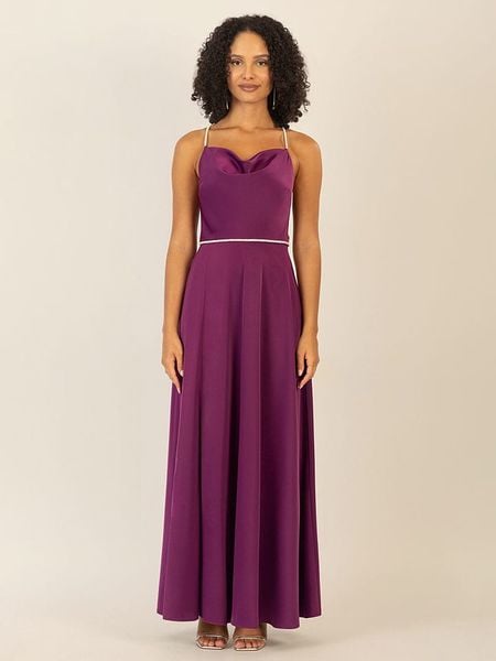 – ramiączka: wąskie- dekolt: kaskada- zapięcie: suwak na plecach- detale: połyskująca nitka- krój: litera A- look: jednokolorowy, imitacja satyny