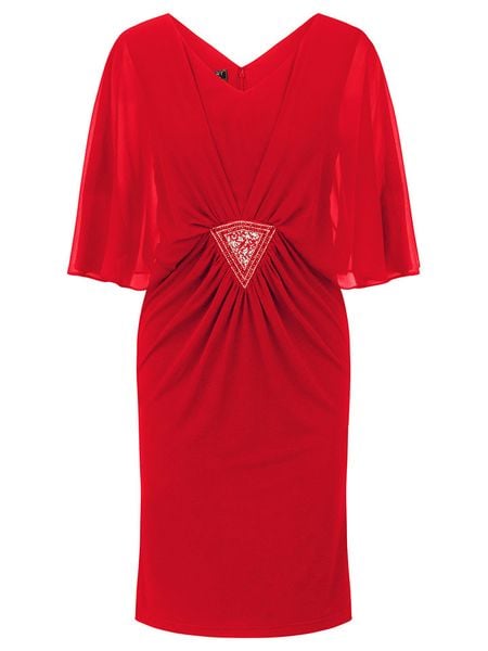 – dekolt: V- zapięcie: suwak na plecach- krój rękawów: motylek- krój: taliowany- detale: błyszczące kamyczki- look: jednokolorowy