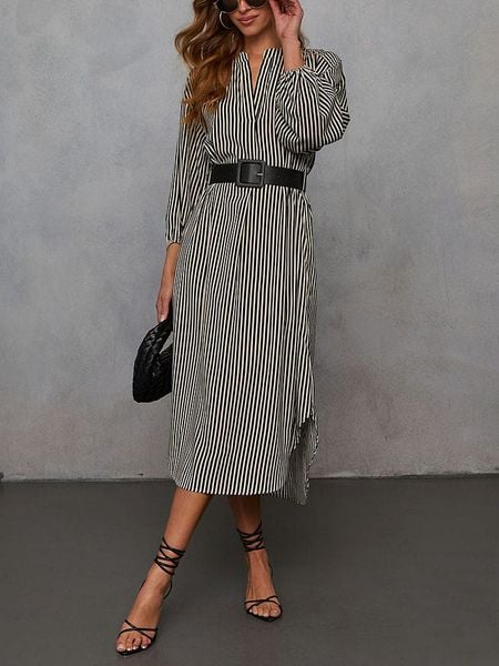 – dekolt: V- kieszenie: wpuszczane- wzór: paski- krój: luźny, dłuższe plecyUwaga: Przesyłka nie zawiera paska.