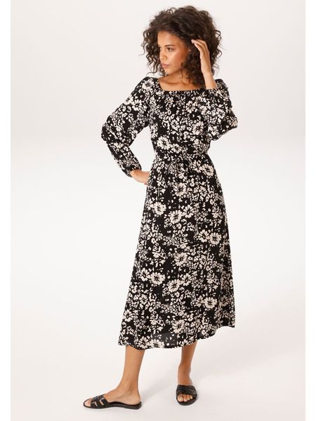 – czysta wiskoza- dekolt: Carmen- krój rękawów: bufiasty- zakończenie rękawów: elastyczne- talia: elastyczna- krój: litera A- wzór: kwiatowy