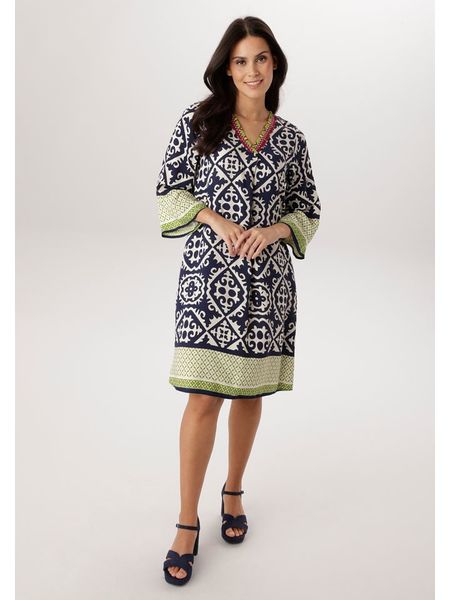 – czysta wiskoza- dekolt: V- długość rękawa: 3/4- krój: luźny- wzór: na całości